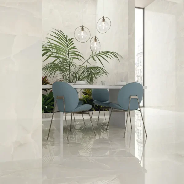 Le marbre céramique blanc se distingue par sa capacité à agrandir visuellement les espaces. Il est populaire pour offrir un aspect de pureté et de luminosité à n’importe quel environnement.