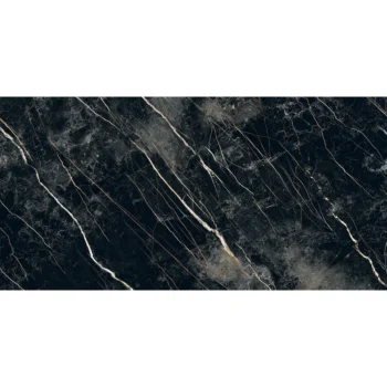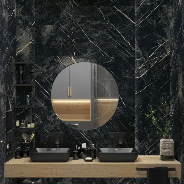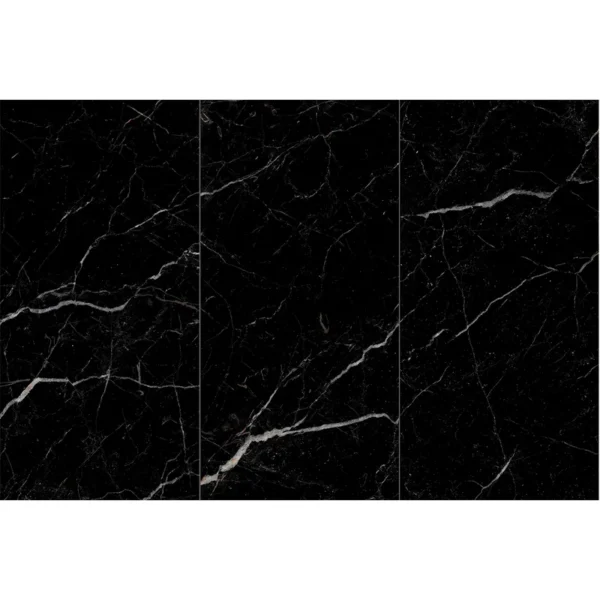Le carrelage en imitation marbre noir apporte une aura de majesté et de luxe avant-gardiste. Ses veines blanches ou dorées en contraste avec le fond sombre génèrent un effet visuel saisissant et sophistiqué.